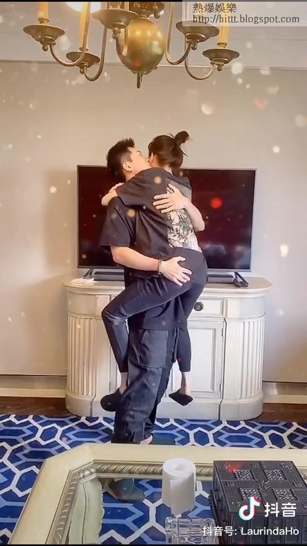 超蓮再孖住竇驍在家中拍片「放閃」,一開始竇驍示意女友蹲下,並做出後空翻動作,竇驍即一手把女友拉起,超蓮隨即雙腳夾實男友腰部施展熊抱,二人立即冧爆甜笑,而竇驍情到濃時更親吻女友臉頰,相當浪漫。