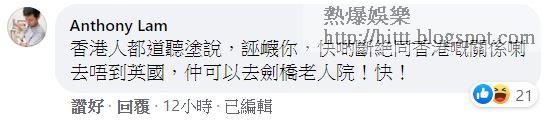 林鄭的舉動有如情侶在被人飛前搶先飛人,行為幼稚被網民笑爆,影帝黃秋生今日接受《蘋果》訪問時說:「係我飛你呀,唔係你飛我呀!港女精神。」袁彌明老公、即曾任網台「香港人網」及「謎米香港」的行政總裁林雨陽昨晚看到林鄭的post,忍不住在下面留言揶揄:「香港人都道聽途說,誣衊你,快啲斷絕同香港嘅關係喇!去唔到英國,仲可以去劍橋老人院!快!」網民都圍爐寸爆林鄭,網民不留情面說:「做特首做到咁嘅成績,你都叻!仲好唔知醜,走」,亦有網民取笑「Congratulations!支持林太返大灣區再進修」和「打好大段嘢話畀人知自己唔care」。逾萬給like當中,萬中竟發現其一是莊思敏。Ben Sir歐陽偉豪今日也在FB貼出屎做底的圖案,上面則寫了「關你院士」,擺明也來取笑林鄭一番。