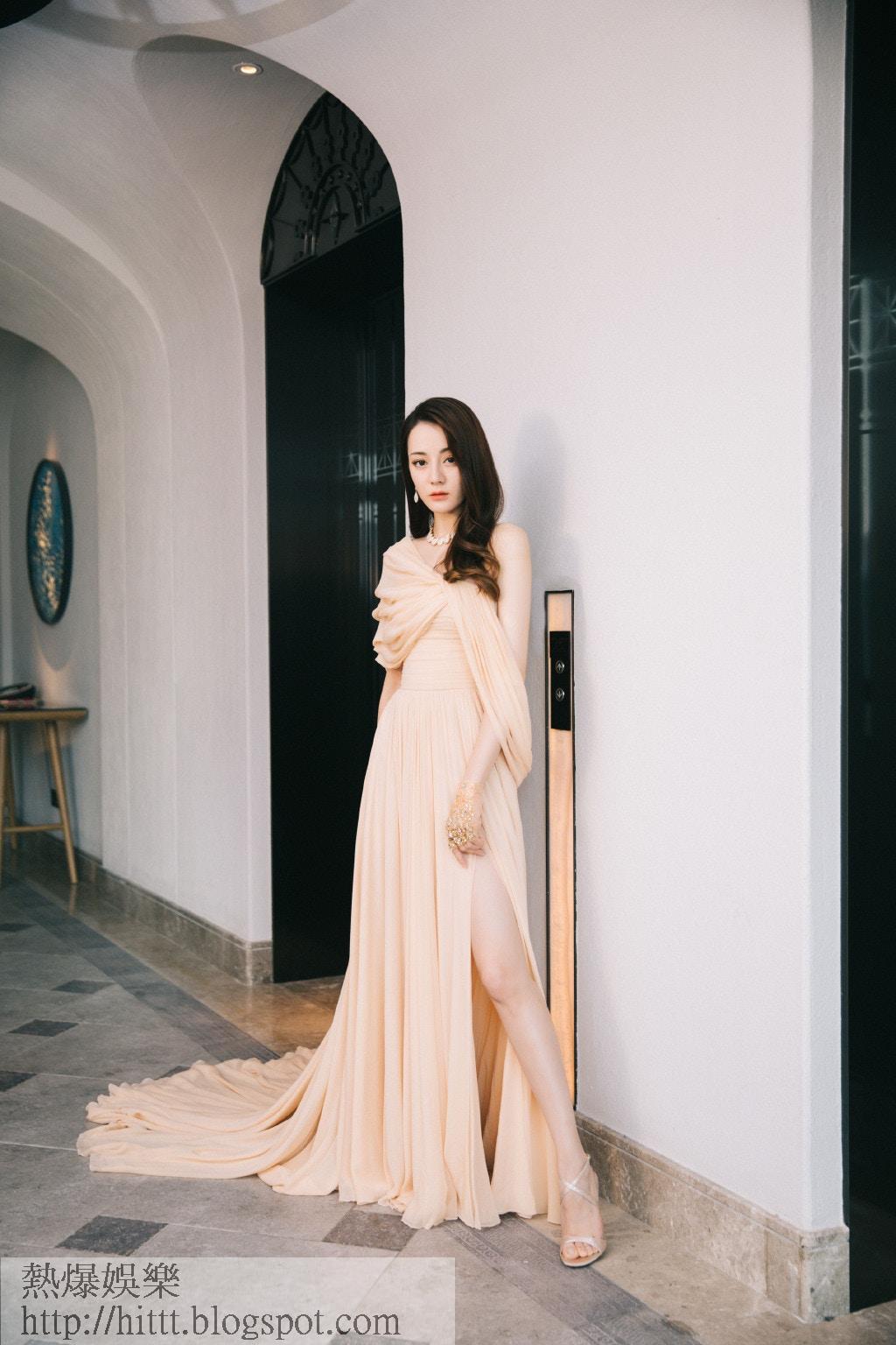 迪麗熱巴身穿薄紗高衩長裙,一雙長腿若隱若現!(嘉行迪麗熱巴工作室微博圖片)