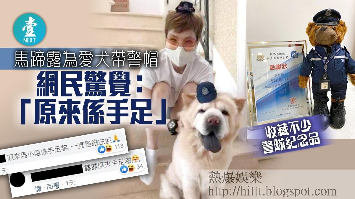 日前,馬蹄露大晒珍藏的Q版警帽,不但自己戴,連愛犬都戴埋一份,一人一狗悉心打扮有如「情侶裝」,馬蹄露又留言「帶你出更」,並加上hashtag「香港警察」、「忠誠勇毅心繫社會」。