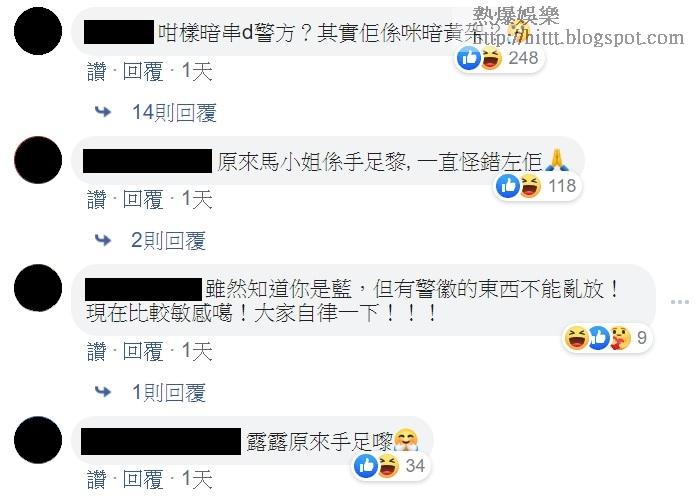 一心取悅藍絲博畀like的馬蹄露,結果被大量網民留言批評,「雖然知道你是藍,但有警徽的東西不能亂放!」、「過份,警察係狗?」及「你是不是在暗示我們偉大的警察是狗」。