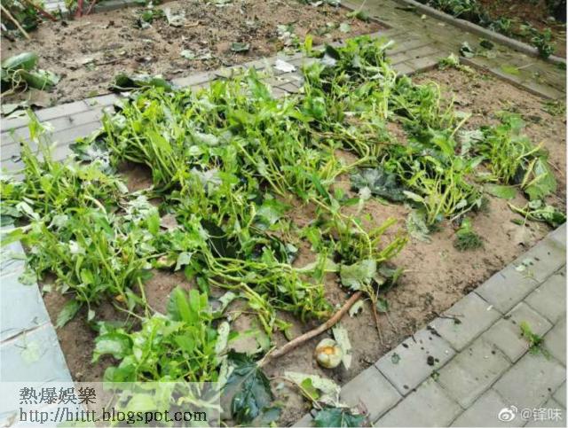 由6月開始北京天氣十分反常,多次出現罕見的落冰雹情況,令不少人驚嘆這個天氣現象。昨日北京天氣再度惡劣,不單止傾盆大雨,更再次出現落冰雹的情況,而身在北京的謝霆鋒,都被這場暴風雨影響到。今日他在微博貼出,兩張他的菜園遭受強風暴雨重擊後慘況,原本綠油油的青菜及農作物通通不堪一擊,全數毁壞,園內竹棚也倒塌地上,明顯損失慘重。