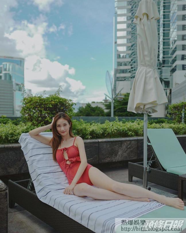 至於身穿火紅色一件頭泳裝嘅蔡嘉欣,翹腳背向鏡頭,只騷滑背及髀位,她留言:「#姊妹淘今日又在搞什麼#唔記得帶防曬」網民即留言:「無防曬都唔變黑?」、「索女嘉欣何時何地,妳都咁fit」、「你搞了我流鼻血」、「靚大髀」!