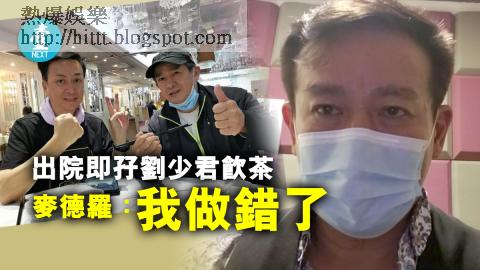 麥德羅今日終於拍片公開道歉:「先同所有網民、讀者講聲對唔住,因為今日睇完報紙都好唔開心,噚日朝頭早應約同劉少君出嚟喺我樓下附近飲茶,出嚟分享吓我哋好番嘅喜悅,亦都分享吓喺醫院要注意嘅衛生,我哋喺醫院四個人一間房,瞓覺都要戴住口罩瞓,唔戴住係好危險。但係出嚟飲茶係唔啱嘅,係大意,先同大家講聲對唔住,亦都先多謝呢兩個星期照顧我嘅醫護人員、醫生同姑娘,同埋對家人講聲對唔住令佢哋受影響,公司方面一直有照顧我,講聲對唔住。我希望大家就算確診好番,都唔好隨便約人飲茶,盡量留喺屋企兩星期,調理身體,總之唔好出去應酬,不必要嘅聚會。我喺度都講聲大家注意衛生,身體健康,對唔住所有朋友,我做錯了。」