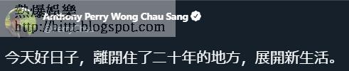 秋生今日在twitter 說:「今天好日子,離開住了二十年的地方,展開新生活。」底下留言好多都祝他一切順利、台灣事業成功等。不過網民就諗多咗,秋生今年3月底時曾在FB貼文,表示有意稍後安排「開倉」,其實他當時正計劃搬屋,他之前接受李婉華「住加女人」訪問亦有講過,在台灣工作之後會返香港搬屋,所以回港後隔離期一過,秋生就着手搬遷事宜,《蘋果》亦有聯絡到秋生,他回覆:「暫時搬家。」至於鄭敬基在FB祝他新生活愉快,秋生禮貌回答:「多謝佢。」