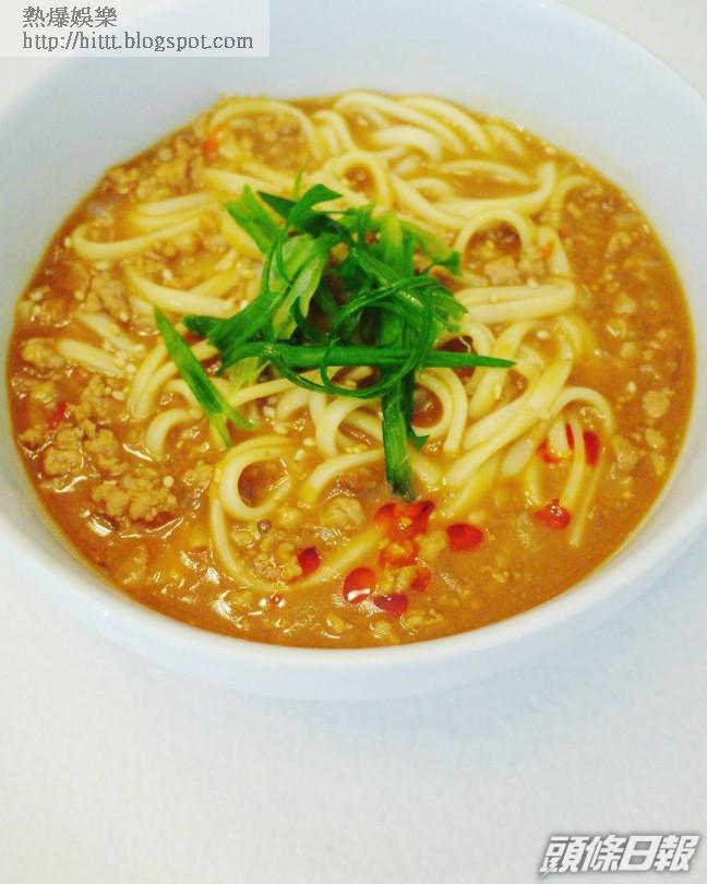 擔擔麵:「基本上你識做台灣陳家涼麵個醬汁,就可以做埋呢個擔擔麵,佢哋差不多只係一冷一熱嘅分別。當然呢個複雜少少啦,亦都要加埋免治豬肉、蝦米、蒜頭同埋紅蔥頭炒。湯底方面就要加埋辣豆瓣醬。最好有花生碎啦,不過我冇錢買啊,媽咪未俾今個星期零用錢。」