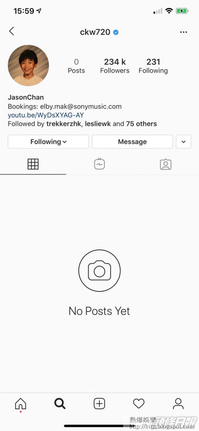 【報平安】突清空ig擔心死fans陳柏宇明中午公布新動向Jason原來有新動向先清空ig,粉絲可以安心晒陳柏宇(Jason)由周六(8月29)起連 ...