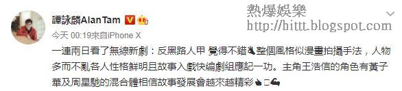 今日「燈神倫」又發功,被點燈的對象,就是「Signal Wong」王浩信!由於疫情全球肆虐,娛圈受重創,譚詠麟的生活亦變得好休閒,多數約埋好友做運動,留在香港悶悶哋,佢更開始煲大台劇,話晒譚詠麟因環球與TVB就版稅問題鬧僵,已絕迹TVB,前日竟然一連兩日狂煲大台新劇,他覺得呢套劇不錯,用咗漫畫拍攝手法,角色性格鮮明,更加持主角王浩信的角色「有黃子華及周星馳的混合體」,唔知佢係講Signal Wong演得似佢哋,定係覺得齋係個角色有呢種feel。