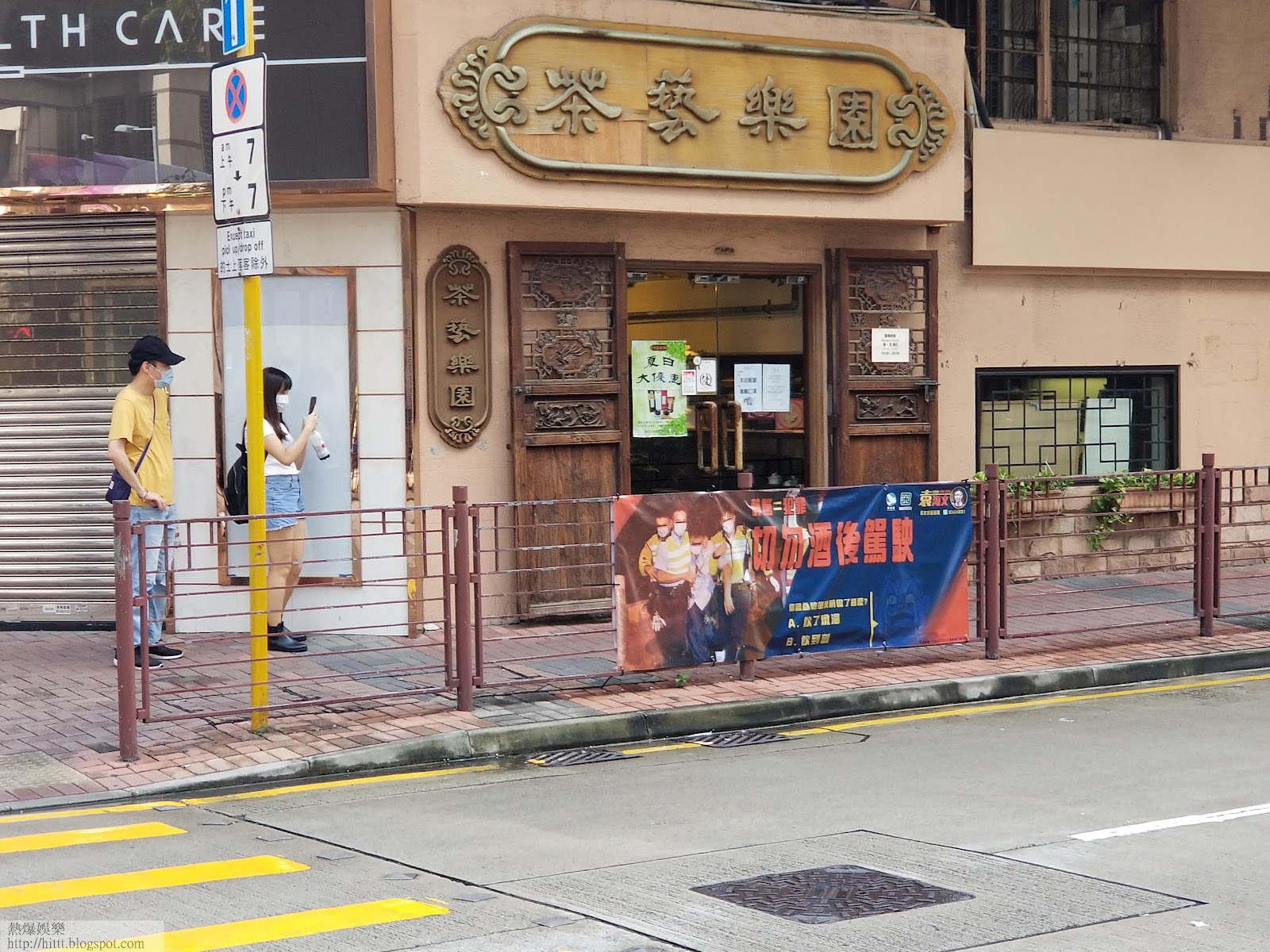 《蘋果》在現場所現,該橫額掛在楊明有份經營的燉湯店荔枝角分店對面,在店內的食客可清晰睇到告示。記者在該處逗留約20分鐘,不少人被該橫額吸引,停步影相,甚至有人說:「好彩未俾人拆,拆咗冇得影。」
