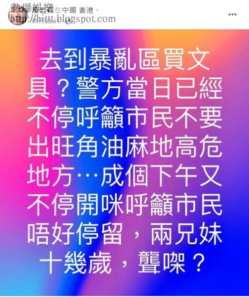 唯恐天下不亂的警隊再獻新猷,繼8.31一周年一名孕婦被警務人員箍頸推倒,辯稱「拉開」時不知道對方懷孕,在剛過去的星期日,一名12歲女童與兄長在旺角買顏料,慘遭警撞飛騎身膝壓,之後反被警屈「拔足逃跑形迹可疑」,更違限聚令被票控,引來全城嘩然,防止虐待兒童會更發表對警方執法關注。