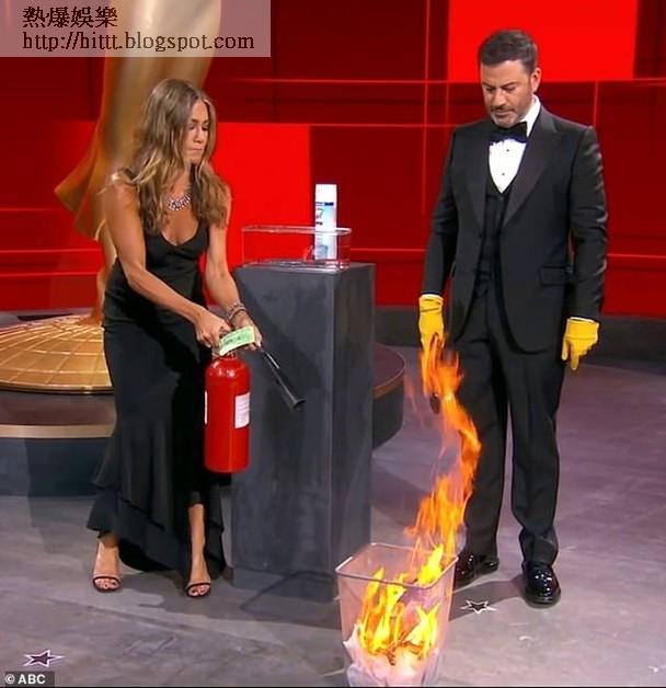 老貓燒鬚,失落視后的珍妮花「玩火」!原來她不單以入圍者身份參與艾美獎,更是喜劇組視后的頒獎嘉賓,跟主持Jimmy Kimmel頒獎時大搞氣氛,揭曉賽果前,Jimmy以衞生為由,竟向賽果信封狂噴消毒噴霧,並扔去火桶,珍妮花即出動滅火筒撲火再宣讀賽果,由《富家窮路》(Schitt's Creek)女星Catherine O'Hara獲獎。《富家窮路》除獲最佳喜劇外,加拿大影星Daniel Levy更憑此劇一人捧走最佳男配角、編劇與導演3獎。失獎的珍妮花「有幸」獲前夫「支持」,因畢彼特也憑《Saturday Night Live》獲提名喜劇組傑出客串演員,但敗在笑匠Eddie Murphy(愛迪梅菲)手上,這對過氣夫妻齊齊捧蛋!