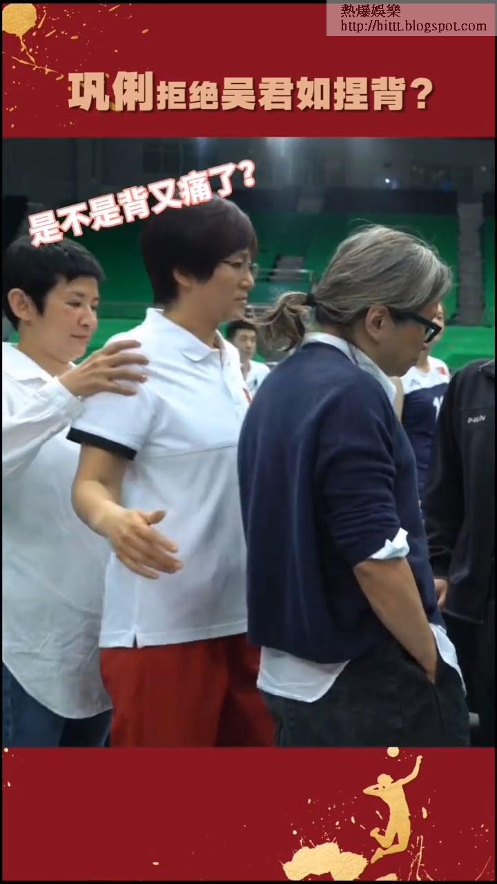 君如對住老公就反白眼,相反對鞏俐就表現得極度細心,當鞏俐同陳可辛一齊睇playback時,君如見鞏俐「寒背」即走到對方身後想出手幫她按摩,不過就被鞏俐拒絕,她向君如解釋自己「寒背」是因為要飾演郎平,如果挺直腰的話就會變回鞏俐。