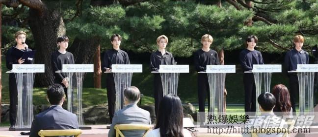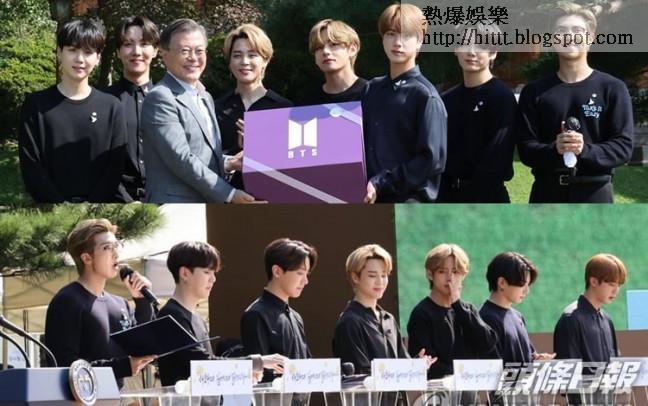 韓國人氣男團防彈少年團今日出席在青瓦台綠地院舉行的第一屆青年節紀念儀式,7位成員均有發言給未來社會主人翁,並向文在寅總統送上一個紫色箱,裏面是成員們深思熟慮後放入的禮物,箱子將寄存在大韓民國歷史博物館,內容將於2039年公開。