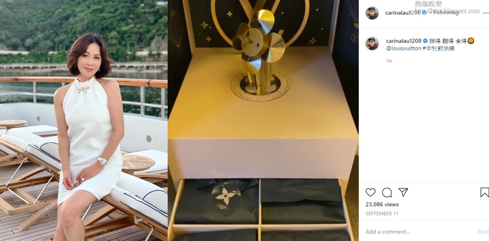 Louis Vuitton 的月餅禮盒化身音樂盒,長方形盒一打開,盒內印上金色燈籠圖案,中間有大大個LV Logo,金色立體花卉裝飾隨音樂轉動,更顯矜貴。