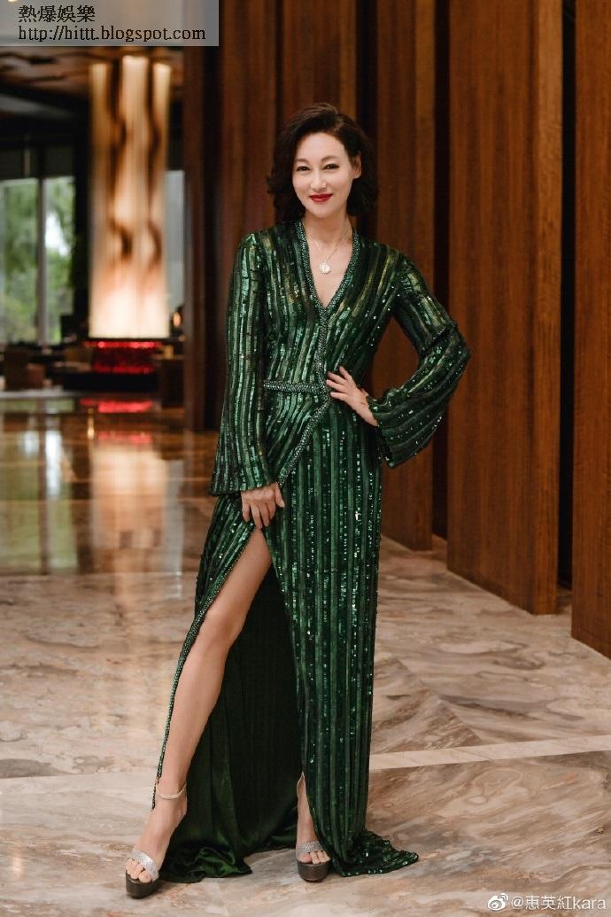 日前惠英紅在內地出席第十五屆中國長春電影節,着上Jenny Packham 深綠色閃片晚裝,長袍般的輪廓加上開衩至大腿的剪裁嫵媚搶眼,但一不小心容易變得老土,小紅姐不但完美駕馭造型,大方高貴,而且已年屆60歲依然有美腿可晒,看起來明艷照人,認真厲害。