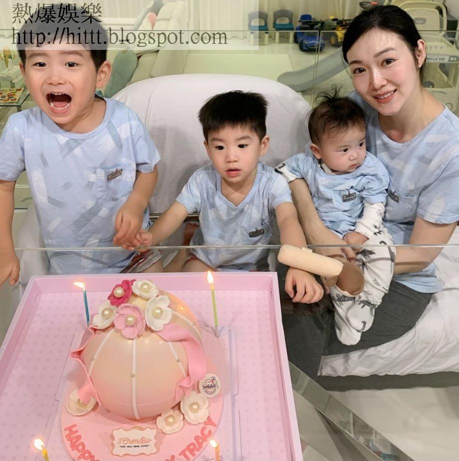 相中翠翠抱住剛7個月大的細仔「三王子」,旁邊有3歲的大仔「小王子」Jake和2歲二子「小小王子」Triton,枱面上放了一個粉紅色的立體蛋糕,相信是翠翠老公所送,而翠翠一臉幸福,有子萬事足。翠翠留言寫︰「今年的生日,是人生中最快樂,也是最辛苦的一年。有一個好老土的生日願望,就是世界和平。」
