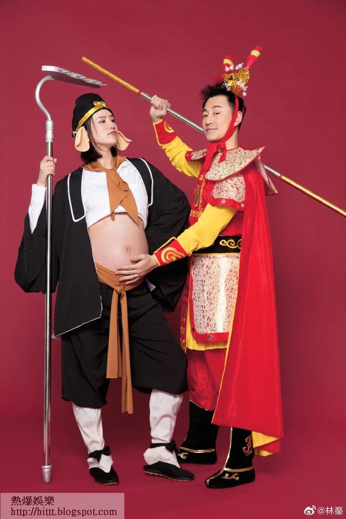 他們更分享一系列大肚寫真相,相中林峯和老婆扮演《西遊記》中的人物,大肚的張馨月打扮成豬八戒,而林峯則打扮成孫悟空。