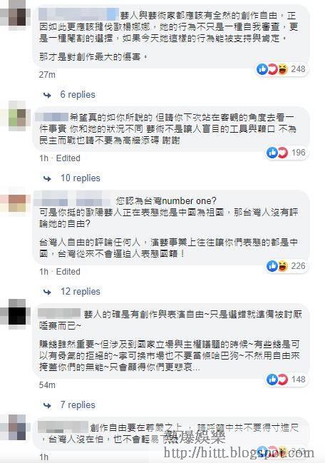 面對網民抨擊及質疑,黃立成之後再發文表明愛台灣,「我挺的是藝人的創作和表演自由,我拍國片投資國片,因為我支持台灣的娛樂產業,我養電競隊7年不放棄,想拿到世界冠軍來證明台灣甚麼都很強。我相信台灣是民主自由的,我堅持藝人的創作和表演是自由的,我在台灣,我愛台灣,Taiwan number 1!」可惜未能減退網民的反對聲,「藝人與藝術家都應該有全然的創作自由,正因如此更應該撻伐歐楊娜娜,她的行為不只是一種自我審查,更是一種閹割的選擇,如果今天她這樣的行為能被支持與肯定。那才是對創作最大的傷害。」、「可是你挺的歐陽藝正在表態她是中國為祖國,那台灣人沒有評論她的自由?台灣人自由的評論任何人,演藝事業上往往讓你們表態的都是中國,台灣從來不會強迫人表態國籍!」、「藝人的確是有創作與表演自由,只是選錯就準備被討厭唾棄而已。賺錢雖然重要,但涉及到國家立場與主權議題的時候,有些錢是可以有骨氣拒絕的。寧可換市場也不要當條哈巴狗,不然用自由來掩蓋你們的無能,只會顯得你們更悲哀……」及「你挺的是藝人創作和表演自由?!我挺的是人格與國格!我只知道,如果當我的國家失去自由,又哪來你所謂的藝人表演自由?想想香港」。