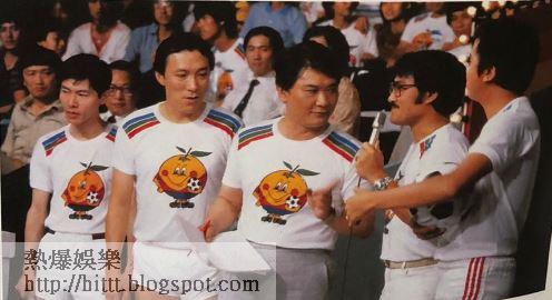 1982年,TVB的《世界盃之夜》,炳哥與眾藝人及香港足球名將進行「足球勁射比賽」。