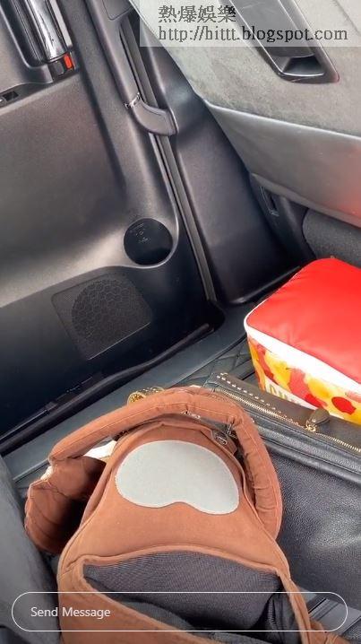 上車後,栢芝在車內拍了幾條片上載社交網,首先她拍片表示剛才在街上遇到記者,而她對此並不介意,只是再三提醒記者要幫她兒子遮臉。之後她再上載一段,長達4分多鐘的自拍片,留言寫表示天氣熱又要戴口罩和抱住肥仔,令她喘氣到暈,更謂︰「我個仔買玩具,我買嘢俾三個仔。」