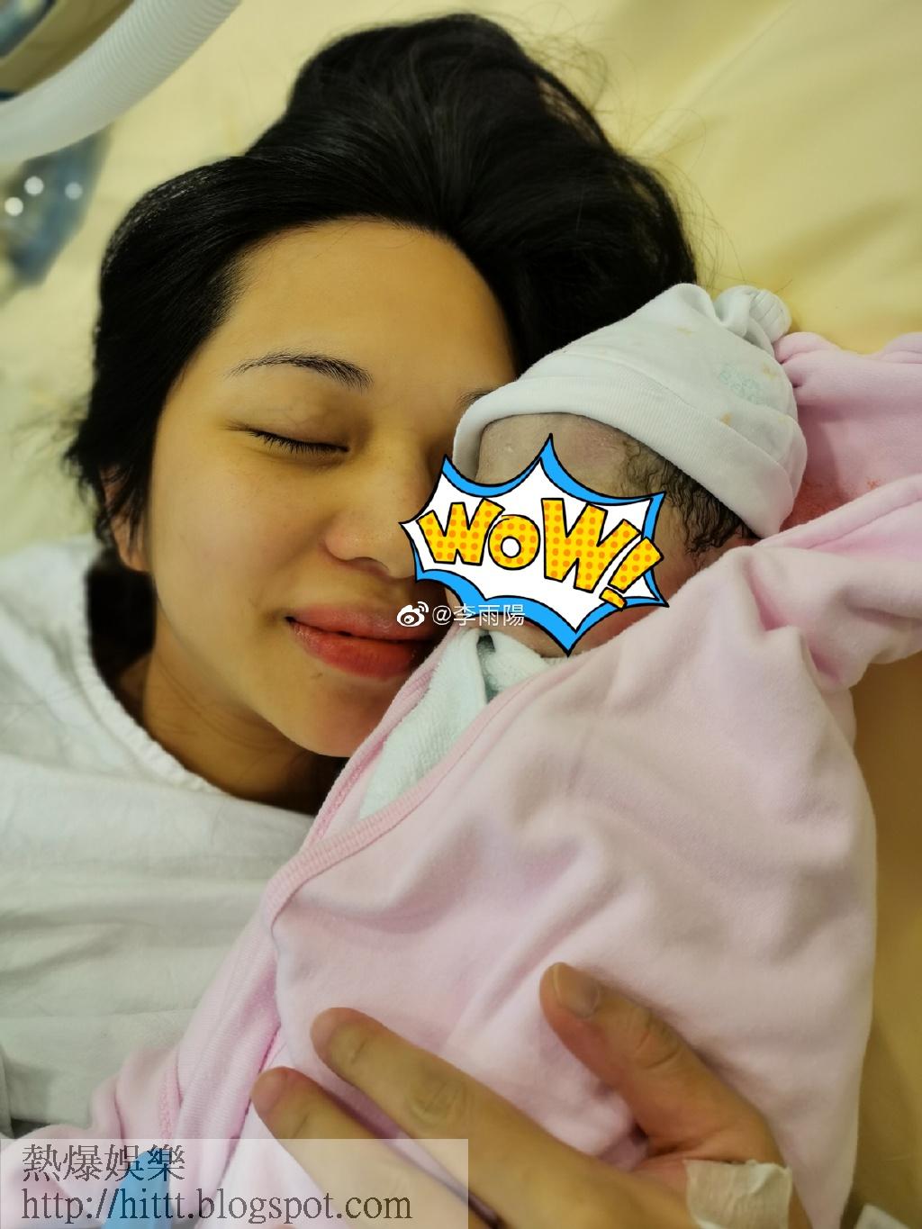 李雨陽在微博貼了三張相,見他穿了醫院的白色袍及戴上頭罩,估計他陪太太入產房,一臉疲倦仍帶笑容的李太,環抱住剛出生的B女,先來一張三口子的大合照。而李雨陽在微博留言︰「肉肉真係好想出嚟見呢個世界,唔使三個鐘就順利出世,母女平安。PS︰肉肉呢個乳名,係天天哥哥改㗎。」