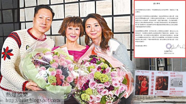 今日陳曼娜女婿蔡朝旭向傳媒發出嚴正聲明,內容指出近日出現不少針對蔡先生的虛假陳述,包括抹黑蔡先生欠債之事,是毫無任何事實根據或支持,令蔡先生感到失望和痛心。本行代表蔡先生對該等不法人士的無理、非法的抹黑、惡意中傷和誹謗,予以強烈譴責。而為免影響其的聲譽及信用,蔡朝旭已委託律師行代表處理上述惡意抹黑和中傷的行為,並採取一切必要法律行動。《蘋果》今日曾聯絡蔡朝旭了解事件,但暫未獲回覆。