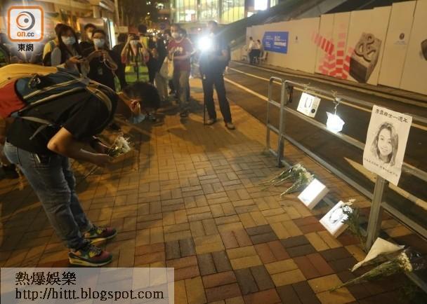 市民點起燭光及送花悼念。(何天成攝)