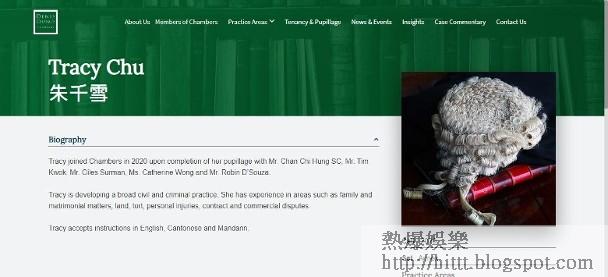 在她任職的律師行上發現已正式成為大律師的Tracy的個人簡介,Tracy簡介上表示將主力民事和刑事案方面實習和發展。此外,Tracy又寫上她於家庭和婚姻事務、土地、侵權及人身傷害、合約和商業糾紛等事務均有經驗。