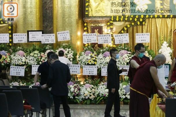 譚炳文假紅磡世界殯儀館地下世界堂舉行設靈及追思會,李香琴契仔陸永昌特製「宇宙大王」花牌敬輓。
