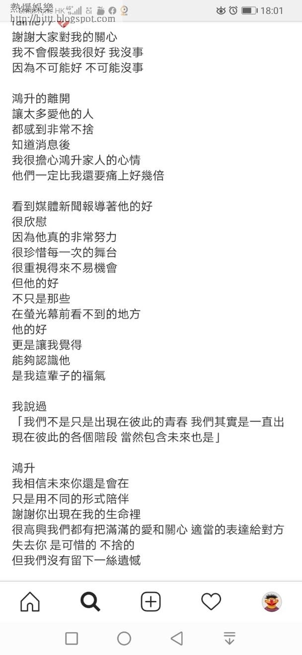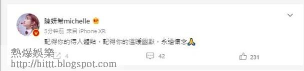 楊丞琳經過消化小鬼離世的事實後,她黃昏時在社交網發文,悼念舊愛,她寫道:「謝謝大家對我的關心,我不會假裝我很好,我沒事,因為不可能好,不可能沒事!」還表示:「能夠與他相遇,是我這輩子的福氣!」可謂一字一淚。