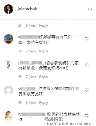 之不過林作的護花行為,並沒得到網民認同,不少女網民批評他踩前度的言論欠缺風度,有網民留言:「今次真心唔明,平時都算buy你言論,點解要咁話MMS(麥明詩)?佢都冇發表過啲咩?仲指人身材同樣貌冇現任咁好,未免太冇風度。」另有網民回覆「每次都buy你,但今次人生攻擊真係少咗份尊重」、「你咁樣公開話你前度真係幾冇品」。
