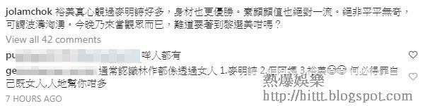 自爆出「林美戀」後,雖然有傳林媽反對,不過林作仍多次出口護花,對於今次裕美與麥明詩遭比較,林作今日凌晨於IG貼出相關報道,明踩舊愛麥明詩,再把女友裕美捧在手掌心,「裕美真心靚過麥明詩好多,身材也更優勝。素顏顏值也絕對一流。絕非平平無奇,可謂波濤洶湧。今晚乃來當觀眾而已,難道要着到嚟選美咁嗎」。