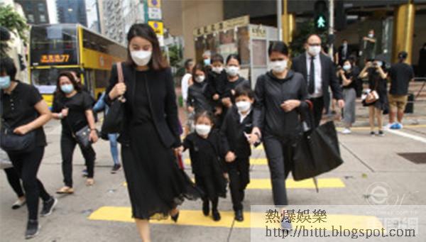 朱玲玲獨自到場送別前奶奶;大仔霍啟剛一家五口亦一早到來,並捧霍老太遺照上靈車。