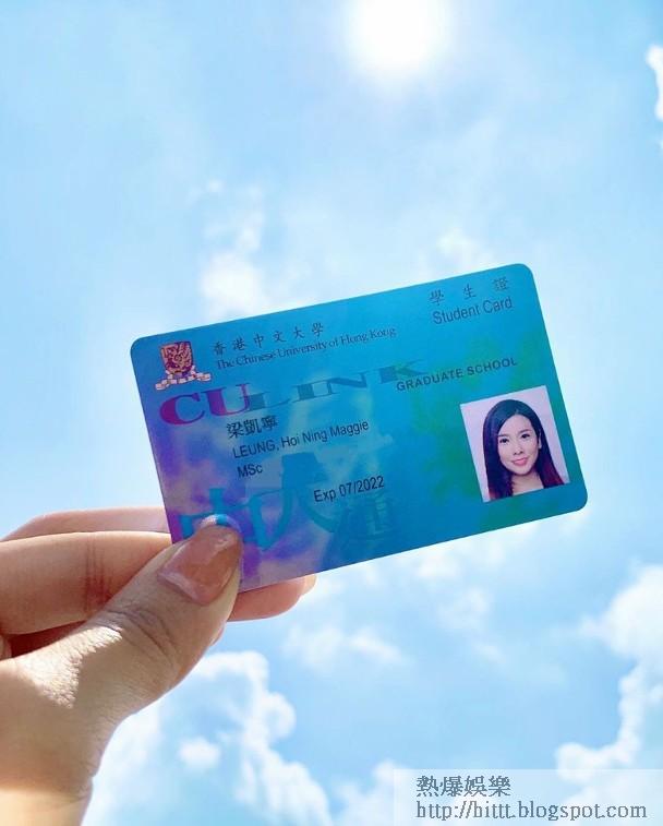 新聞小花梁凱寧(Maggie)成功考入中文大學醫學院修讀碩士課程,佢今日正式開課,不過都係用視像。佢喺社交網上載八月時到學校拎學生證嘅相片,佢話:「今年終於到我做返學生喇!發夢都冇諗過我呢個文科生,竟然有機會入到中大醫學院修讀碩士課程。嚟緊要做全職學生喇,由傳理學院走到醫學院,聽起上嚟好似大纜都扯唔埋,希望走出comfort zone嘅我,可以順利畢到業,換個跑道,繼續保持初衷,幫助有需要嘅人。」其實Maggie周身刀,求學時期已考獲8級鋼琴及8級芭蕾舞資格,同時熱愛水上活動嘅佢仲係潛水高手,之前仲學習駕駛飛機添。