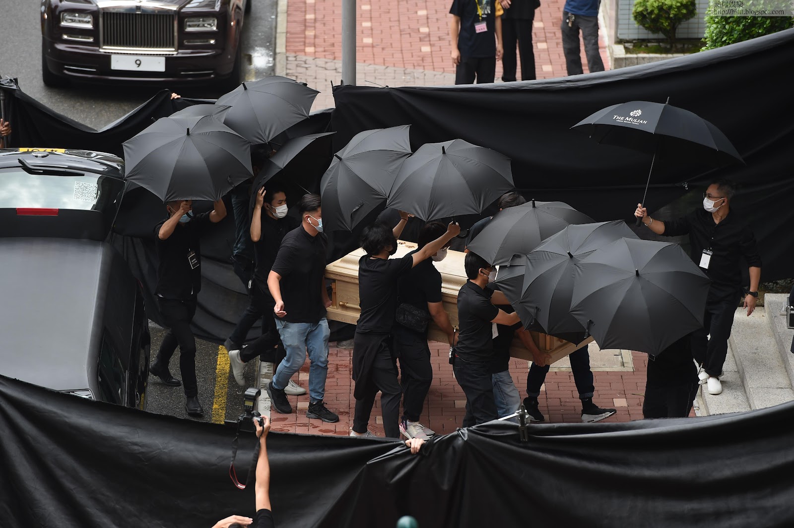 早上約10點45分左右,西式靈車來到現場,由於陳木勝的家屬十分低調,不欲曝光,故事前大批工作人員架起接近兩米黑布,圍住教堂門口,造成通道,給家屬進入。現場所見,陳木勝兒子捧住遺照落車,全程工作人員舉起黑傘遮掩,其他家屬進場時,亦舉起傘陣,之後其象牙色木紋的靈柩,由多位工作人員合力抬入教堂。