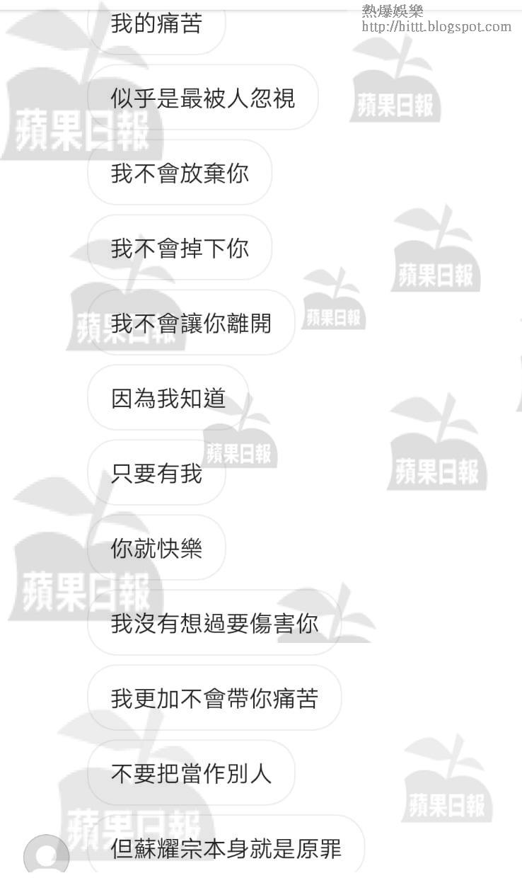 今年6月,阿B堅決跟細So斬纜,在IG私訊給蘇太爆大鑊:「對不起,兩年半前接受了蘇耀宗的愛,來到今天,我希望你能叫他放低我,我知道只有你有能力叫他放手,我知道無論我說甚麼,都改變不了他,無論我罵他甚麽都沒有用,就算我講得很難聽,他還是會告訴我他放不低,可能每天仍然會在live唱歌,每日仍然堅持msg我。我知道既然愛他,應該讓他好過一點,應該讓他少一點煩惱,我知道只要放低我,他才會好過一點。」