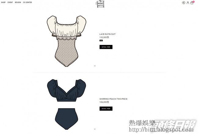 Taeri的泳衣網店WANNABIKI售賣的泳衣,價格大約是十萬韓圜(約660港幣)。