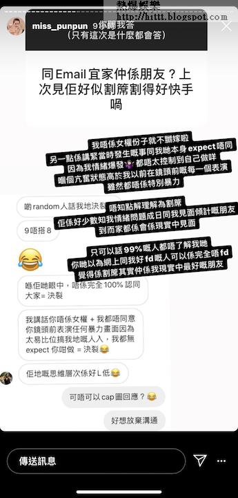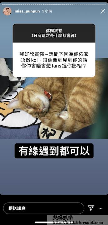 而是Miss Pun 復出後,亦在instagram中開個你問我答: