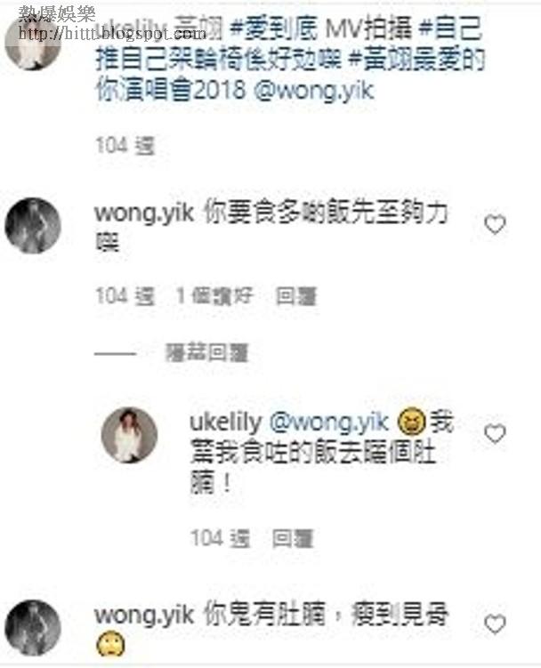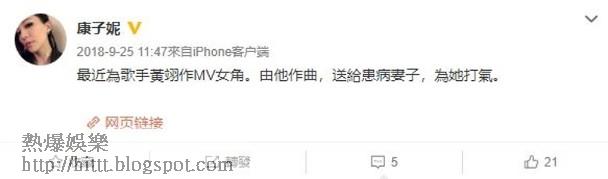 當時康子妮曾上載MV中坐輪椅的花絮照,留言表示要為陳存正打氣,又打趣留言:「自己推自己架輪椅好攰㗎!」黃翊立刻回覆:「你要食多啲飯先至夠力㗎」,未幾她再秒回:「我驚我食咗啲飯去晒個肚腩!」黃翊即回復:「你鬼有肚腩,瘦到見骨」。同年10月黃翊舉行個唱,擔任和音的康子妮分享後台合照,兩人身貼身影相,表現興奮。