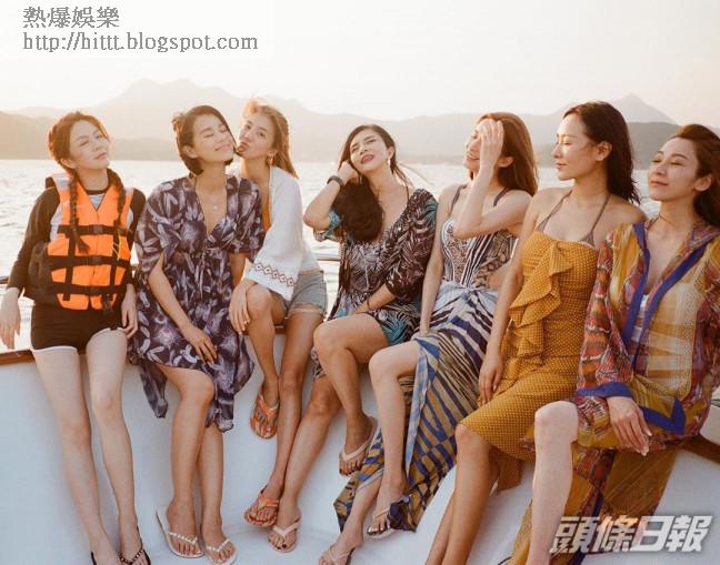 片中,杏兒又表示在夕陽靚景下,嘆住美酒與佳餚又可以一邊打住卡煞科,感覺好浪漫,她說:「浪漫呢樣嘢唔單止同男人,同女人都可以好浪漫。」而Jess昨日亦於IG公開7女於船上拍的靚相,當中最資淺的曾樂彤雖然大騷白滑長腿,但上身卻穿長袖兼笠救生衣,非常密實;至於Jess和Jeana就穿上低胸裙稍稍露出事業線,不過都唔及身旁的陸詩韻咁養顏,事關她以比堅尼披薄紗外套上陣,隱約晒出34D巨咪;而最搞笑是個頭吹到亂晒的千語,她幾乎張張相都俾頭髮遮晒塊面,好狼狽。