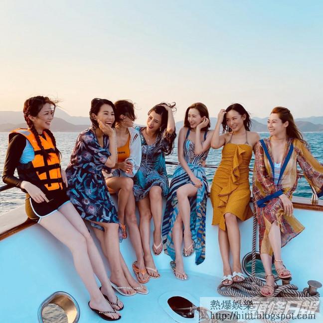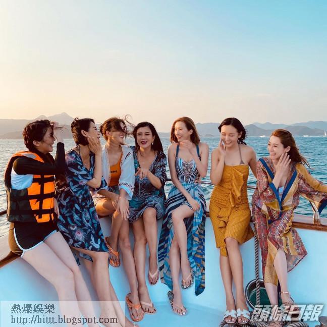 片中,杏兒又表示在夕陽靚景下,嘆住美酒與佳餚又可以一邊打住卡煞科,感覺好浪漫,她說:「浪漫呢樣嘢唔單止同男人,同女人都可以好浪漫。」而Jess昨日亦於IG公開7女於船上拍的靚相,當中最資淺的曾樂彤雖然大騷白滑長腿,但上身卻穿長袖兼笠救生衣,非常密實;至於Jess和Jeana就穿上低胸裙稍稍露出事業線,不過都唔及身旁的陸詩韻咁養顏,事關她以比堅尼披薄紗外套上陣,隱約晒出34D巨咪;而最搞笑是個頭吹到亂晒的千語,她幾乎張張相都俾頭髮遮晒塊面,好狼狽。