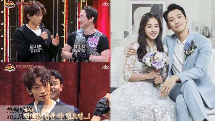 另外,Rain在節目內亦展現了「女兒儍瓜」的一面,現場有男參賽者自爆是Rain的忠實fans:「真的很想見到Rain,高中2年級時看到他的表演後就迷上了,還在學校慶典演出時遇到了現在的妻子。」之後他又表示自己現時有兩名兒子,希望有機會與Rain的兩名女兒成為親家。不過身為兩名女兒的爸爸就似乎不欲「前世情人」有結婚的一天,更搞笑說:「我個人就希望我的女兒不要結婚,亦不想讓女兒與他們見面。」即時笑爆全場,而主持人全炫茂就表示:「如果不喜歡就說不喜歡」,Rain即爽快大喊「討厭」,十分搞笑。