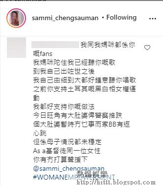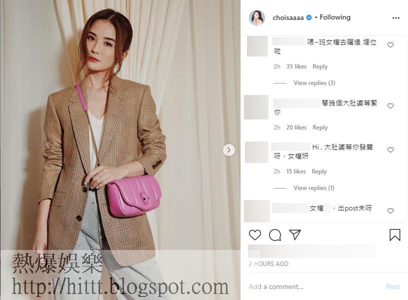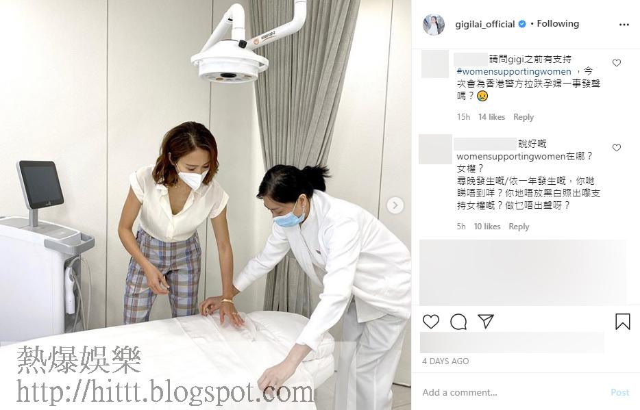 當時接受challenge時很快便上載黑白照的女星們,今天沒甚「動靜」,其中黎姿出po講自己美容院相關的事,有網民留言問她:「請問GiGi之前有支持 #womensupportingwomen,今次會為香港警方拉跌孕婦一事發聲嗎?」但黎姿未有回覆。而Sammi、阿Sa亦有同樣情況出現,有網民到她們的IG留言,問她們對孕婦被警方拉跌一事有何看法,她們統統不作回應。