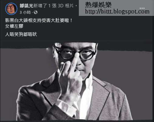 繼趙學而後,導演兼編劇鄒凱光(灘叔)亦在自己的社交平台為孕婦被拉倒一事發聲,他更以月前曾掀起一陣跟風潮的「黑白照challenge」作配圖,鄒凱光在相中以中指托眼鏡,並留言說:「影黑白大頭相支持受害大肚婆」明諷那班跟風影黑白相「撐女權」的眾女星。不少網民見到鄒凱光出黑白照po來寸爆班撐女權女星,紛紛留言感謝他發聲,又表示支持他的言論,大讚「灘叔好嘢」,光環攞盡。