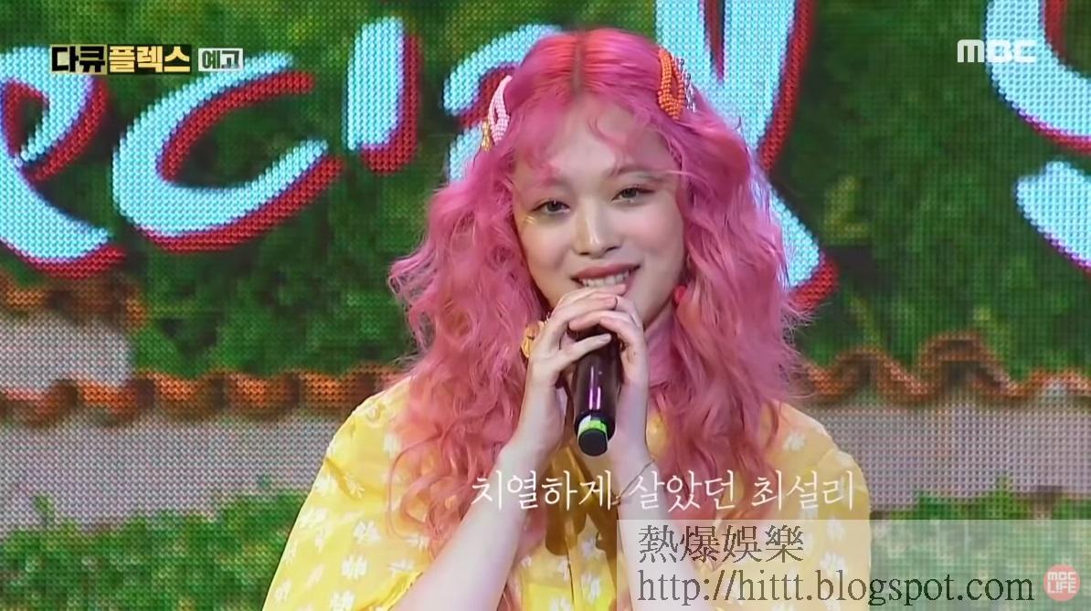 相隔兩個月,MBC今日突然公開了Sulli紀錄片的30秒預告,表示紀錄片將由下周四起播出。影片公開了Sulli童星時期在片場的開朗活潑的樣子,以及她去年6月推出個人專輯時,曾笑着表示「我會努力地好好活下去」,令fans大呼懷念其笑臉。之後Sulli的媽媽罕有現身,哭着說道:「媽媽來得太遲,抱歉。」