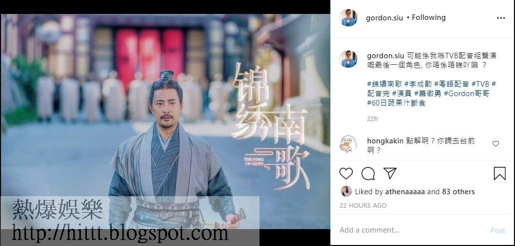 或許是他在無綫配音組最後一個工作。(IG圖片)