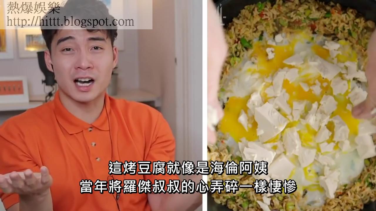 當炒飯煮到一半,Jamie突然將平底鍋拿到鋅盤中加水,讓Uncle Roger看後亦忍不住道:如果飯太濕,那麽你已經搞砸了,就算飯剛好,你也經已經搞砸了」Jamie不單將炒飯視為「小食」,並非亞洲大眾眼中的「主食」。而且更將「炒飯」說「隨便」,讓Uncle Roger更覺得難以接受。最後Jamie更在飯中加入豆腐,而且更是他隨意地把豆腐捏碎,不同於亞洲人在上菜時會將豆腐切成完整片塊,令Uncle Roger」崩潰大叫「我快撐不下去了!」。