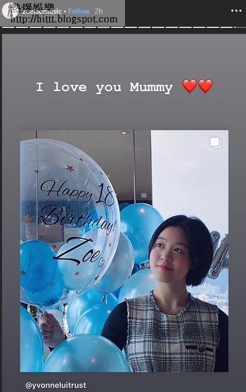 生日不忘母親的愛,秀盈以「I Love You Mummy」來冧呂麗君。