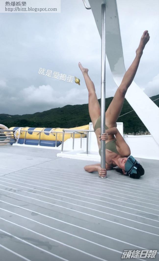美女飛魚歐鎧淳(Stephanie)不只是游泳健將,原來她也是跳舞高手,近日愛上跳鋼管舞,更在家中安裝鋼管苦練舞蹈,可知其熱愛程度。Stephanie昨日在社交網上載與好友遊船海相片,身穿三點式的她大騷腹肌與長腿,身材弗爆。她見船上有條鋼管,即場大顯舞技,做出高難度動作,倒吊兼擺出優美姿勢。她留言:「冇咩嘢我哋只係百厭啲。」好友倪晨曦也不禁留言:「2米的腿。」