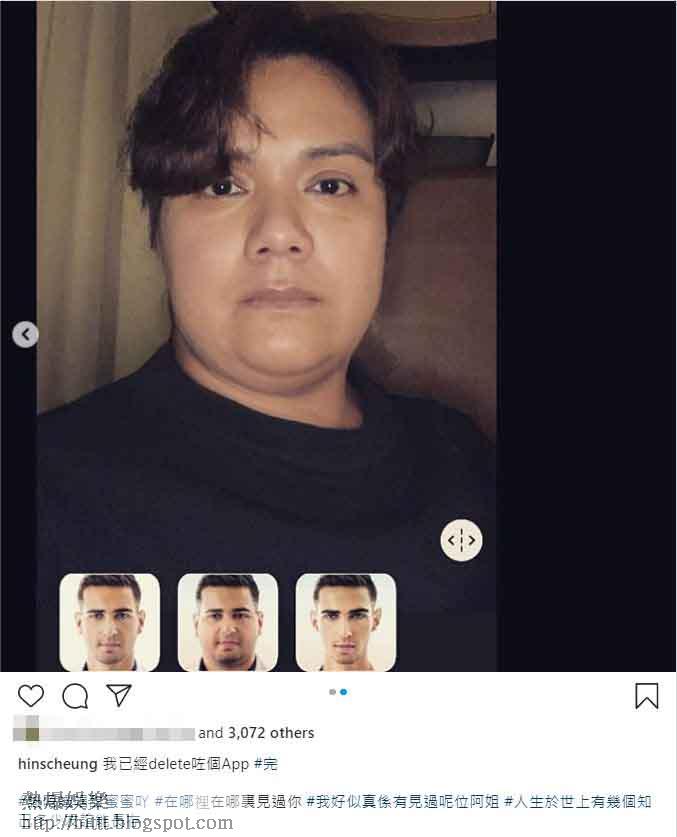 張敬軒今日在IG中表示自己直至昨晚前,一直未玩過該App,而他亦貼出一張「變肥」後的照片並留言:「我已經delete咗個App。」只見肥咗的軒仔完全變成另一個肥媽,而軒仔亦好抵死地hashtag「#我好似真係有見過呢位阿姐 #人生於世上有幾個知己多少友誼能長存」一眾網民睇完軒仔張相當然瘋狂恥笑,更留言:「化個妝~可以同6號拍返輯食平啲~」、「肥媽你好!」、「肥媽+喬寶寶」、「你係咪肥媽私生子?」